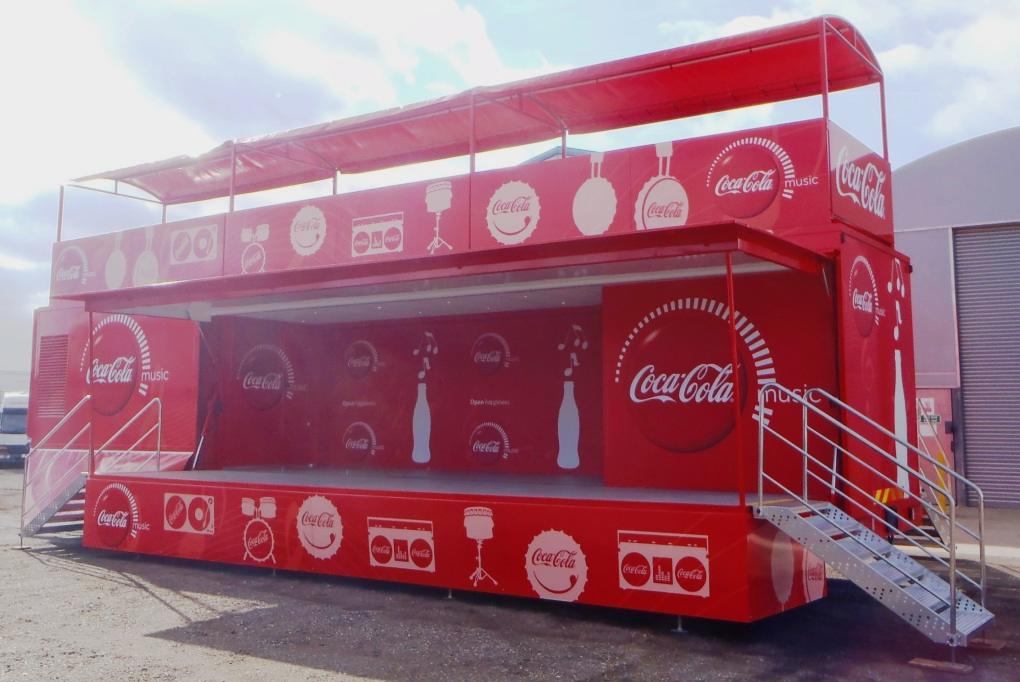 Stella required a full sampling counter with plumbed in service points whereas Coca Cola required a full ‘live stage’ facility for acts to perform and VIP Guests to be entertained.